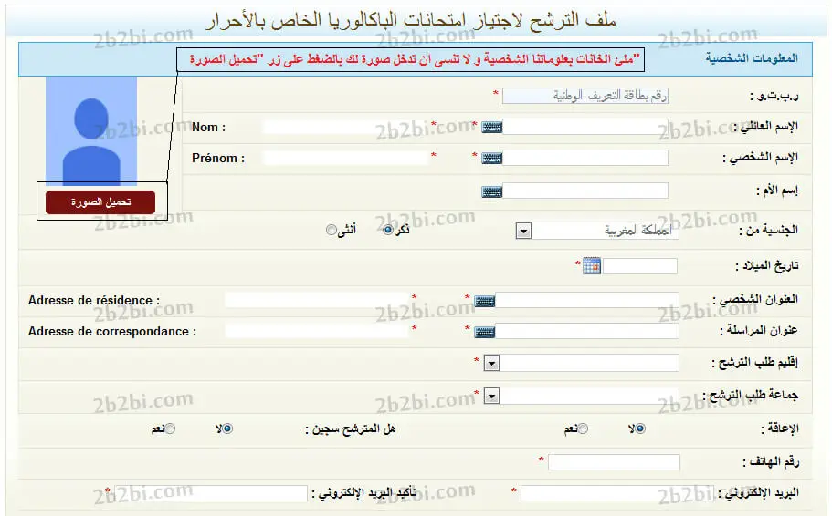 للتسجيل في البوابة واستخراج استمارة التسجيل, يجب الدخول الى بوابة ترشيح الاحرار عبر : http://candidaturebac.men.gov.ma/