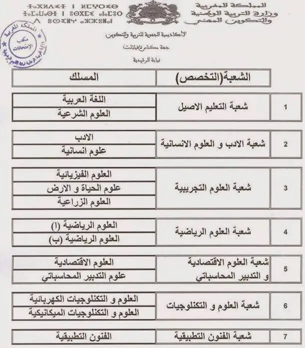 بخصوص اختيار المسلك، الصورة تساعدك في الاختيار :