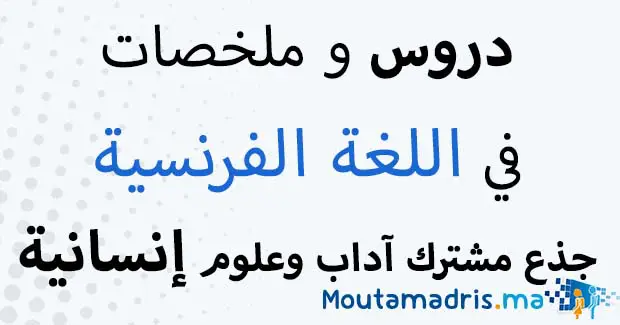 ملخصات دروس اللغة الفرنسية جذع مشترك اداب و علوم انسانية الدورة الاولى و الدورة الثانية, شروحات و تلخيصات ممتازة لجميع الدروس نهدف من نشرها الى مساعدة تلاميذ جدع مشترك اداب و علوم انسانية على الاستيعاب و الفهم الجيد استعدادا لإجتياز فروض المراقبة المستمرة مادة اللغة الفرنسية.